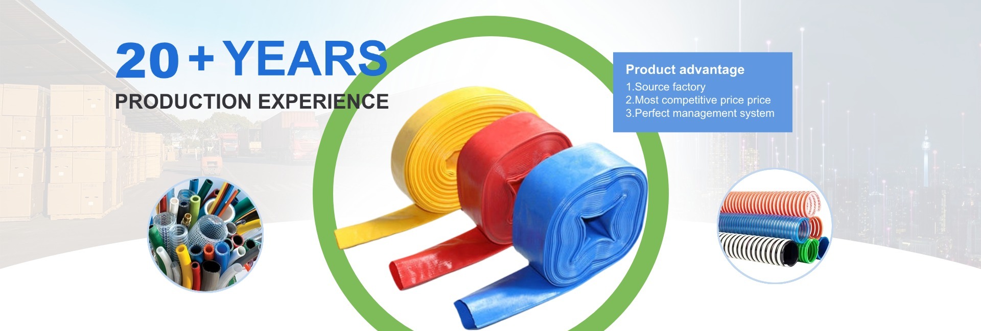 Productos principales:Manguera de PVC, accesorios, conducto flexible, tubo de manguera plana de PVC, manguera de succión de PVC
